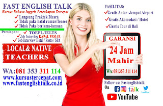 Memcermati situasi informasi digital yang sangat cepat dan kebutuhan Bahasa Inggris yang sangat mendesak dan penting ini, Lembaga Kursus dan Pelatihan Bahasa Inggris Percakapan Tercepat FAST ENGLISH TALK terus berinovasi dan mencari cara tercepat, dimana orang Indonesia bisa cepat menguasai dan mahir berbicara Bahasa Inggris hanya dalam waktu singkat tanpa harus menghabiskanw aktu dan tenaga untuk menghafal rumus/Tenses selama berbulan-bulan bahkan bertahun namun tidak bisa mampu berbicara Bahasa Inggris.